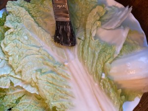 3.把麵糊刷在大白菜上。